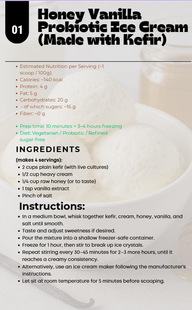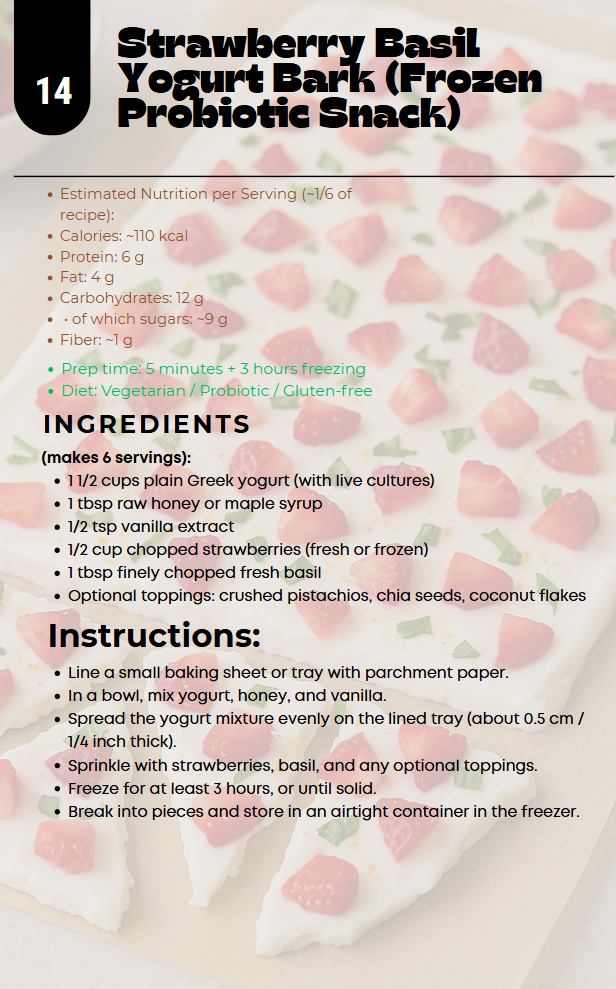 Every recipe features live cultures from natural sources like kefir, yogurt, kombucha, or fermented fruit — supporting your digestion and microbiome balance.